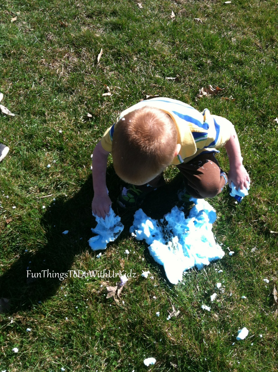 This is the first thing we did ^ balloons filled with Mr.Bubbles foam soap. Each had a little surprise, soap and filled with air so when it pops it would make a nice mess.
